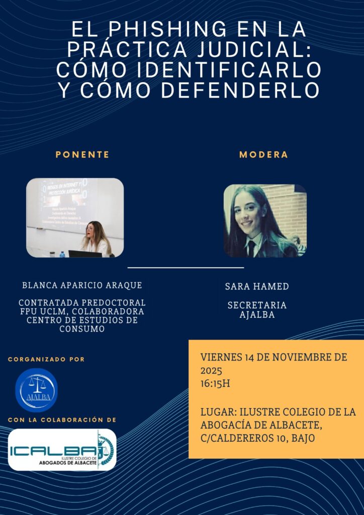 📣 Jornada formativa para jóvenes abogados y colegiados del ICALBA. 🗓 Viernes, 14 de noviembre de 2025 🕓 16:00 h 📍 Ilustre Colegio de la Abogacía de Albacete, C/Caldereros 10, bajo Tendremos el placer de contar con Blanca Aparicio Araque, Contratada Predoctoral FPU UCLM y Colaboradora del Centro de Estudios de Consumo, que impartirá la […]